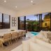 L’esterno offre un’esperienza rara per una townhome: piscina privata a livello del suolo, giardino tropicale e spazio lounge per grigliate e relax, con l’atmosfera di una villa unifamiliare e la praticità di una residenza urbana.