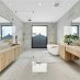 vasca scultorea free-standing accanto a una grande finestra panoramica