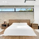Il vero protagonista della residenza è la suite padronale, concepita come un’opera architettonica: una scenografica parete in cemento a vista, una raffinata zona notte con piattaforma in legno sospesa e suggestivi lucernari che diffondono luce naturale durante tutto il giorno.