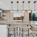 La cucina su misura, di livello professionale, è un perfetto equilibrio tra estetica e funzionalità: arredi eleganti, elettrodomestici di alta gamma e superfici in pietra pregiata la rendono il fulcro ideale sia per la quotidianità che per l’intrattenimento.