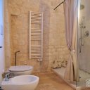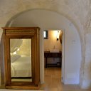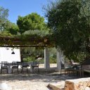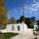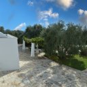 VILLA turistico-residenziale in TRULLI e LAMIE con Piscina sita in OSTUNI alla contrada Monte Michele. Situata in posizione panoramica e dominante nella Valle d’Itria, gode di vista su Martina Franca. La struttura è stata recentemente ristrutturata (2020) con materiali naturali (chianche per i pavimenti, legno per gli infissi, ferro battuto per elementi di arredo) e arredi di stile minimal di produzione artigianale. La struttura comprende una parte in LAMIA adibita a cucina-sala da pranzo con zona cottura dotata di piano cottura ad induzione, lavastoviglie, forno elettrico e forno a legna, e zona pranzo con tavolo per dodici persone, arredi e frigoriferi, oltre a impianto di condizionamento aria calda e fredda, wi-fi e allarme autonomo, e adiacente PERGOLATO attrezzato per living esterno con vista piscina. La zona notte è composta da 4 camere da letto tutte con ingresso indipendente e bagno en suite, di cui una ubicata nei trulli con alcova camino e area living con divano letto alla francese, altre due camere ubicate nelle lamie con volta a botte con zona living con divano letto matrimoniale, poltrona relax/lettura, frigobar e televisore, e l’ultima camera con bagno (realizzata in vano avente destinazione deposito) è ubicata in lamia con volte a botte. Tutte le camere sono accessoriate con aria condizionata, riscaldamento, wi-fi ed allarme autonomo per ciascuna stanza e completamente arredate e corredate anche da frigobar, televisore e scalda-biancheria. L’area esterna è attrezzata con PISCINA a sale con colori naturali, SOLARIUM pavimentato in chianche e corredato da lettini prendisole su prati con ulivi secolari a bordo piscina, oltre a zona verde costituita da una parte di giardino e una parte di terreno con uliveto (circa 75 alberi) e frutteto circondato da una zona ombreggiata da alberi di fragni (querce locali), della superficie di circa mq. 6.858. La villa è dotata di due cisterne per la raccolta dell’acqua, di cui una per le acque piovane uso irriguo. La vendita comprende tutti gli arredi ed elettrodomestici.