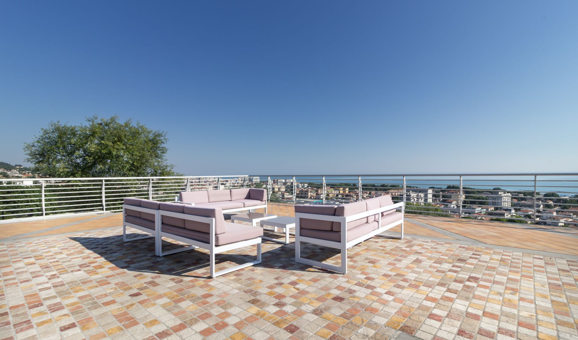 Splendido complesso residenziale con vista mare, ubicato in una delle zone di maggior pregio di Pescara, nella prima collina prospiciente la riviera nord, immerso nel verde e nella tranquillità. Dal cancello posto su Strada Fonte Borea si accede, tramite strada privata, all’interno della proprietà percorrendo una panoramica strada di accesso che si snoda attraverso piante di ulivo affaccianti sul sottostante litorale pescarese. L'unità immobiliare è formata da una palazzina con piano terra, piano primo e copertura (corpo 1) e da altri due manufatti indipendenti (corpo 2 e 3) tutti destinati all'uso abitativo. E' presente una piscina con dimensioni di metri 9.50 x 20 e un campo da tennis regolamentare, nel corpo 3 è presente un'auto rimessa con accesso diretto. Tutto il complesso e gli impianti (piscina e campo da tennis) sono in perfetto stato manutentivo, le finiture sono di pregio e gli arredi esterni sono di ottimo livello, sono presenti ampi spazi panoramici, è presente un sistema di allarme centralizzato che serve tutta la proprietà. Lo sviluppo delle superfici interne sono di 1000mq, lo sviluppo delle superfici pertinenziali esterne è di 3000mq, il tutto recintato. Sono inoltre presenti 23000mq di terreno vista mare piantumato a ulivi oggetto di eventuale trattativa separata.
