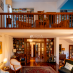 Zona giorno scenografica, con salone doppio, camino, grandi vetrate sul giardino e soppalco architettonico di grande impatto visivo