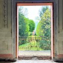 Si accede alla villa tramite un lungo viale alberato contornato da giardini all’italiana con aiuole, siepi e arbusti.