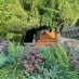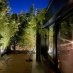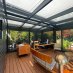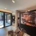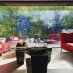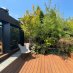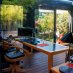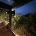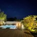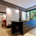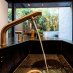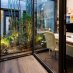L’ingresso conduce a un affascinante living outdoor, immerso tra piante di bambù e arricchito da una vasca con carpe giapponesi, trasmettendo sin da subito un senso di armonia e benessere. Una parete in vetro separa elegantemente gli interni, mantenendo una connessione visiva costante con il verde esterno.