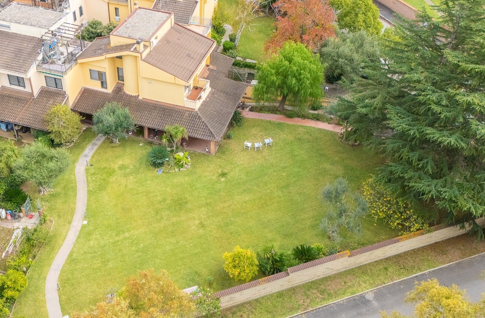 La proprietà si sviluppa su una superficie complessiva di 335 mq, ed è circondata da un meraviglioso parco privato di 1.400 mq, estremamente curato con gusto e impreziosito da alberi da frutto e piante rare provenienti da diverse parti del mondo.
