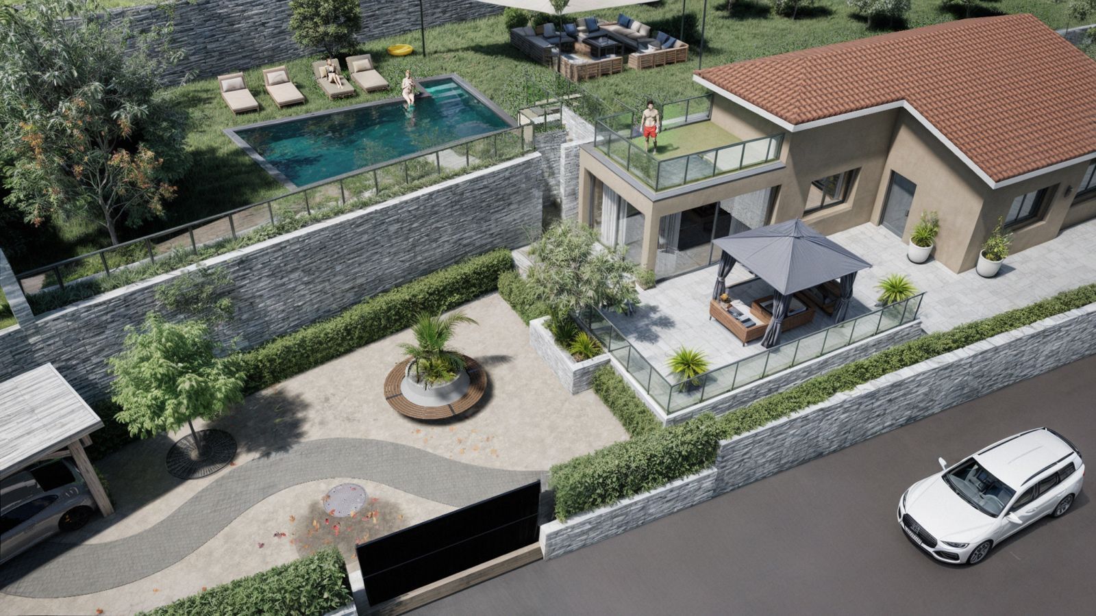 L’immobile dispone di spazi esterni vivibili, con terrazzo d’ingresso collegato ai posti auto tramite vialetto con rampa, perfetto anche per accesso facilitato. Un ambiente che si presta benissimo alla realizzazione di zona relax o cucina estiva.
