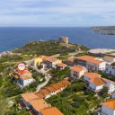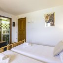 Al primo piano si sviluppa la zona notte principale, composta da tre camere matrimoniali, tutte con bagno privato e vista mare, oltre a una cameretta anch’essa con bagno en suite. Il piano terra accoglie ulteriori due camere matrimoniali, sempre con vista mare e bagno privato, oltre a un comodo locale di servizio con zona lavanderia.