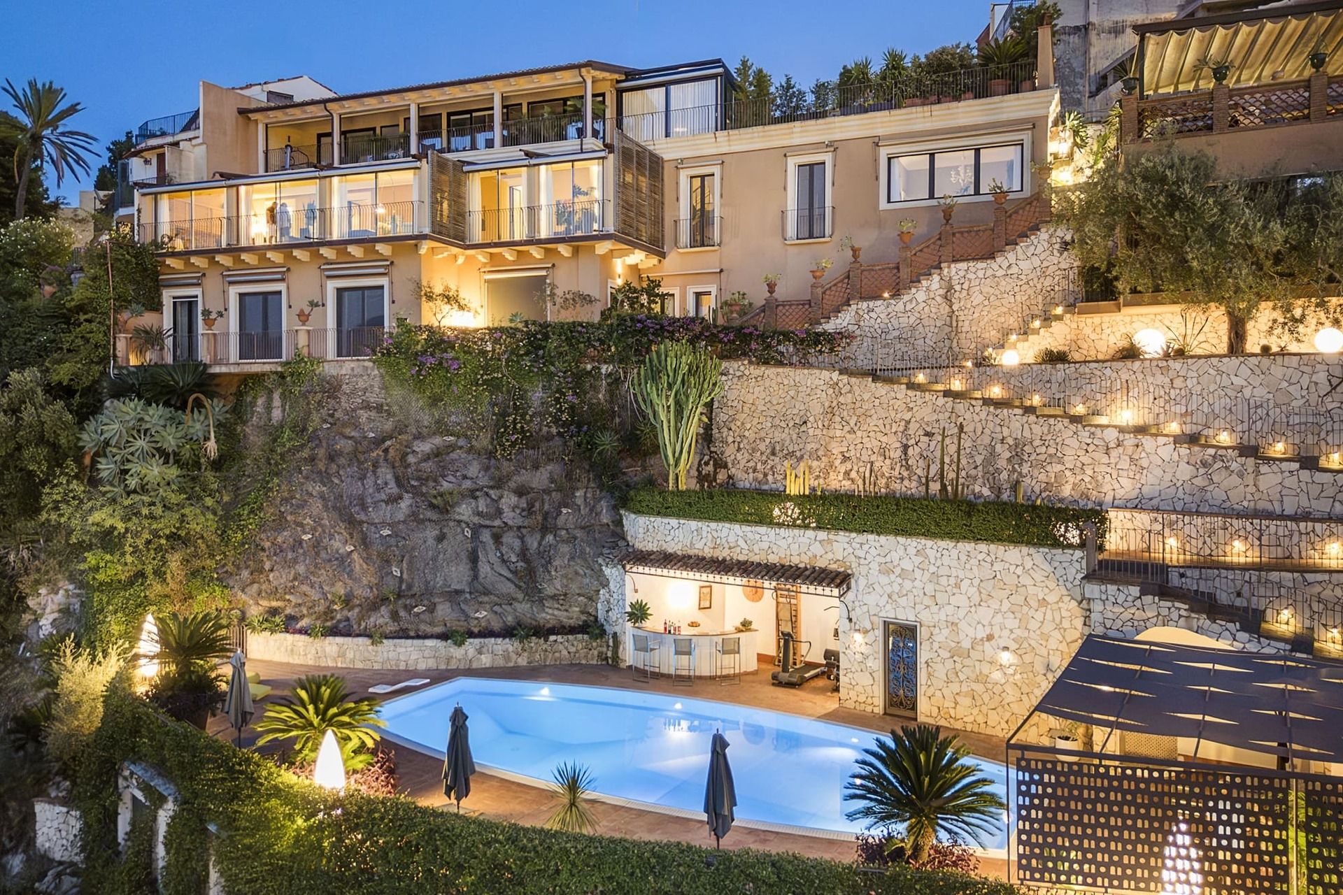 Immersa nella cornice naturale più suggestiva di Taormina, questa esclusiva residenza domina la baia di Mazzarò con un panorama che lascia senza fiato. La sua architettura, incastonata nella roccia e sospesa sul mare, unisce design contemporaneo, eleganza e autenticità siciliana.