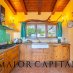 La cucina, completamente in legno, è caratterizzata da un ampio piano cottura affacciato sul giardino, mentre le finiture artigianali e la cura nei dettagli parlano di autenticità e qualità.