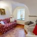 Al piano terra troviamo una camera, un bagno ed una cucina abitabile accessoriata con forno a legna. Scendendo alcuni gradini si accede ad una ampia zona giorno divisa in pranzo e zona soggiorno: un ambiente caldo e accogliente, valorizzato dai soffitti a volta e dalle murature in pietra. Da qui si accede al giardino privato di circa 60 mq raggiungibile direttamente dalla strada tramite il cancello pedonale. Il giardino è uno spazio piacevole, riservato e vivibile con un’area pranzo coperta da una pergola.