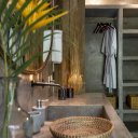 Ogni suite dispone di un giardino privato che si affaccia sul proprio bagno, permettendo a ciascun ospite di godere della natura e di un po’ di discrezione. Distribuite in due strutture separate e contrapposte affacciate sul giardino e sulla piscina, ogni stanza ha una forma, dimensione e dettagli di arredamento unici.