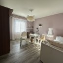 - piano primo: appartamento ristrutturato di 110mq+50mq di balconi, composto da: grande ingresso che disimpegna tutta la casa, cucina abitabile con ampie finestre e porta finestra che dà accesso al balcone, soggiorno con camino a legna ed ampie finestre, 4 camere da letto, bagno con vasca.